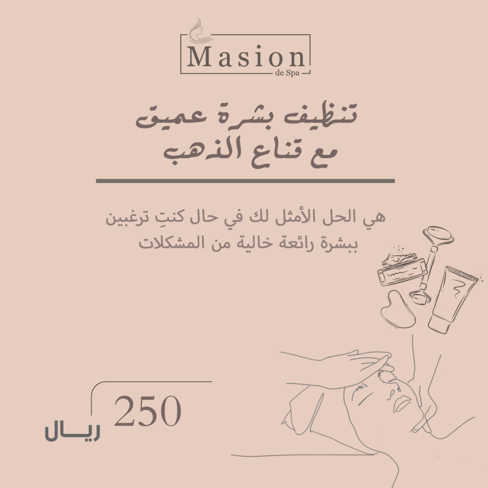 نقوم خلال هذه الجلسة بتنظيف بشرتك أولاً أي نقوم بتقشيرها وتعريضها للبخار ثم نقوم باستخدام ماسك الدهب.